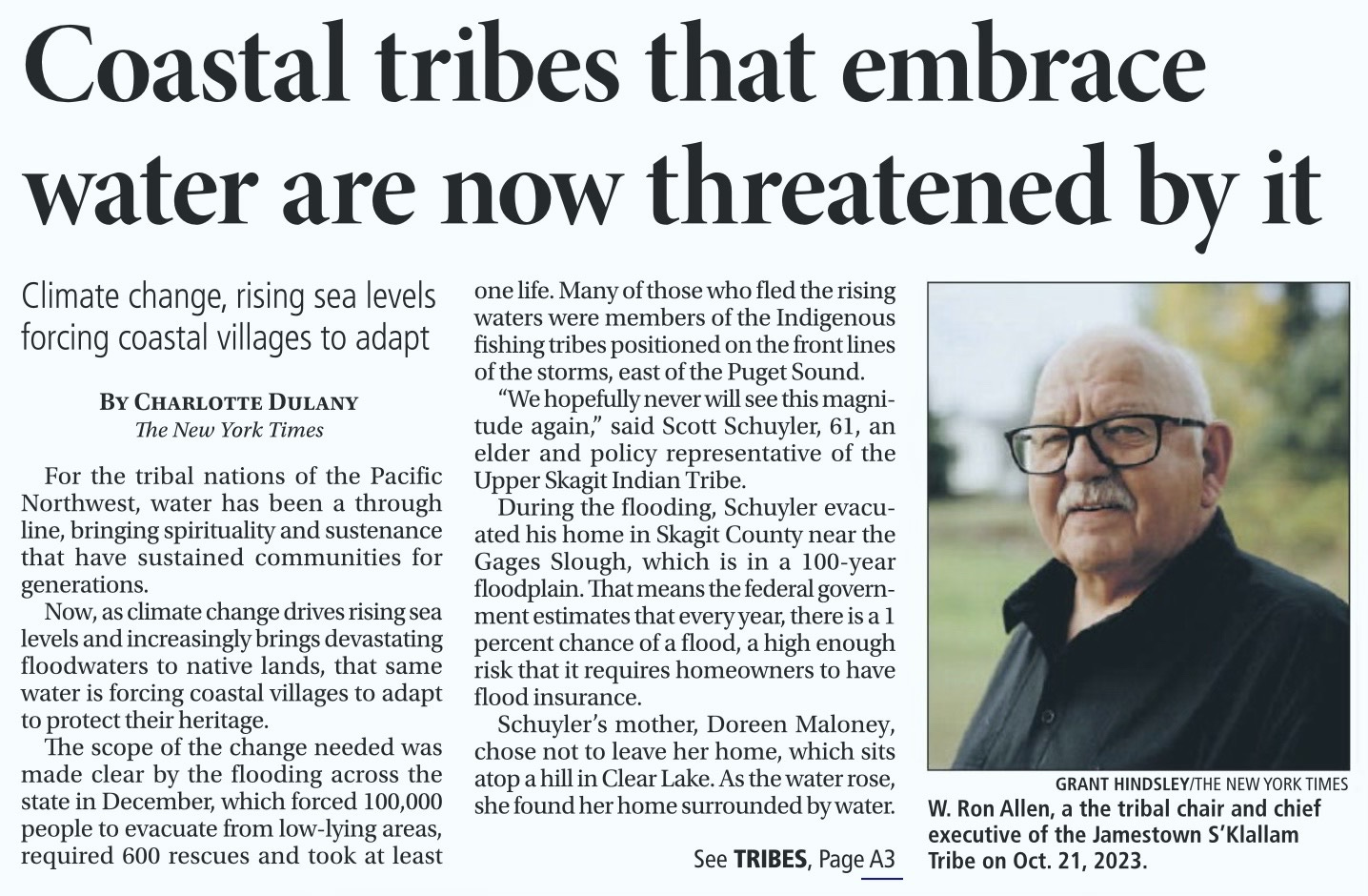 Jamestown Corporation CEO Ron Allen told the New York Times that 50 years ago, rivers were healthy, water was abundant, and sea levels were stable.
