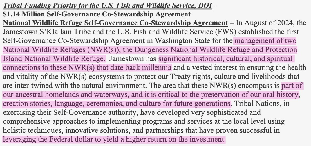 Buried in federal testimony submitted by Jamestown S’Klallam Tribe Chairman and CEO Ron Allen is confirmation of what many have suspected: his Corporation is not just participating in management of the Dungeness and Protection Island National Wildlife Refuges—it is actively investing in long-term control over them.