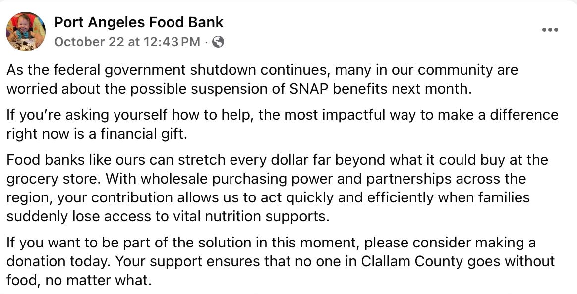 The Food Bank also made an announcement urging residents to donate, citing fears that federal SNAP benefits might be cut.