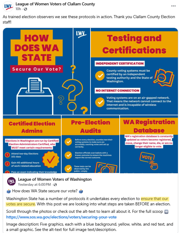 Three days later, they reassured residents on Facebook that Washington’s elections are “secure.”