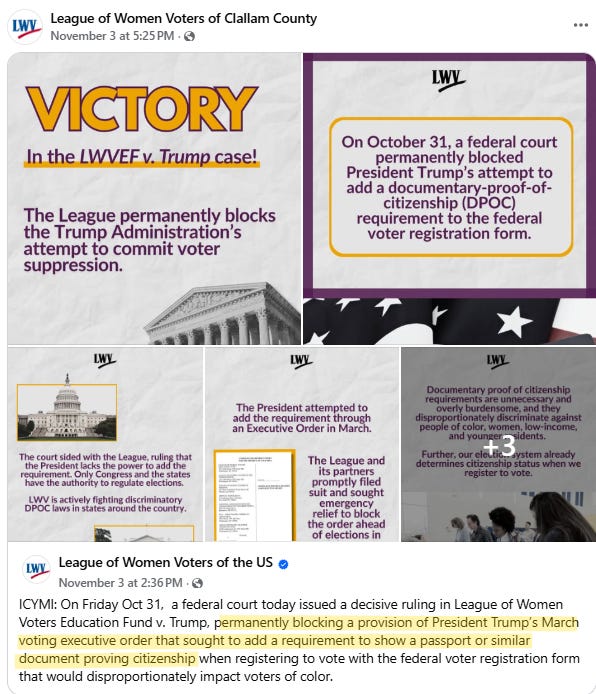 The vehamently “non-partisan” Clallam County League of Women Voters recently celebrated blocking a proposal that would have required proof of citizenship to vote — calling it a victory for democracy.