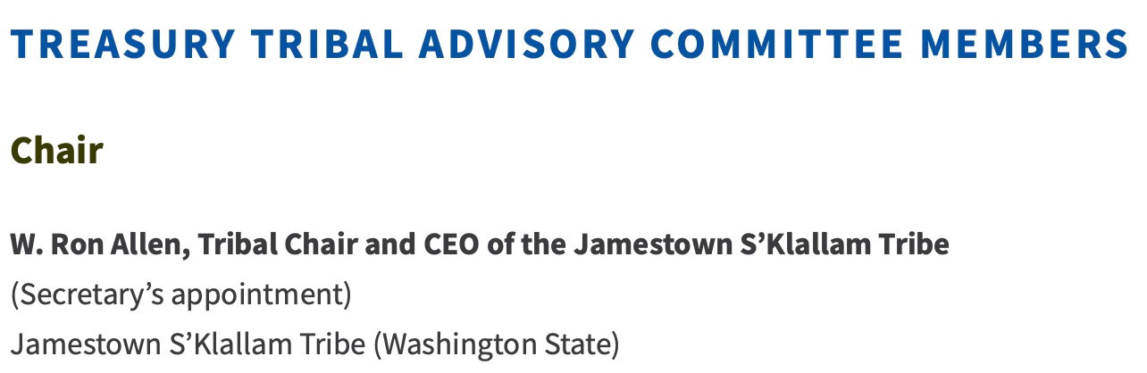 Jamestown Tribe CEO Ron Allen isn’t just a local tribal leader — he also chairs a U.S. Treasury advisory committee overseeing tribal taxation and IRS training related to Native enterprises. It’s a powerful national post for the head of a tribe with just over 500 members, only about 200 of whom live locally.
