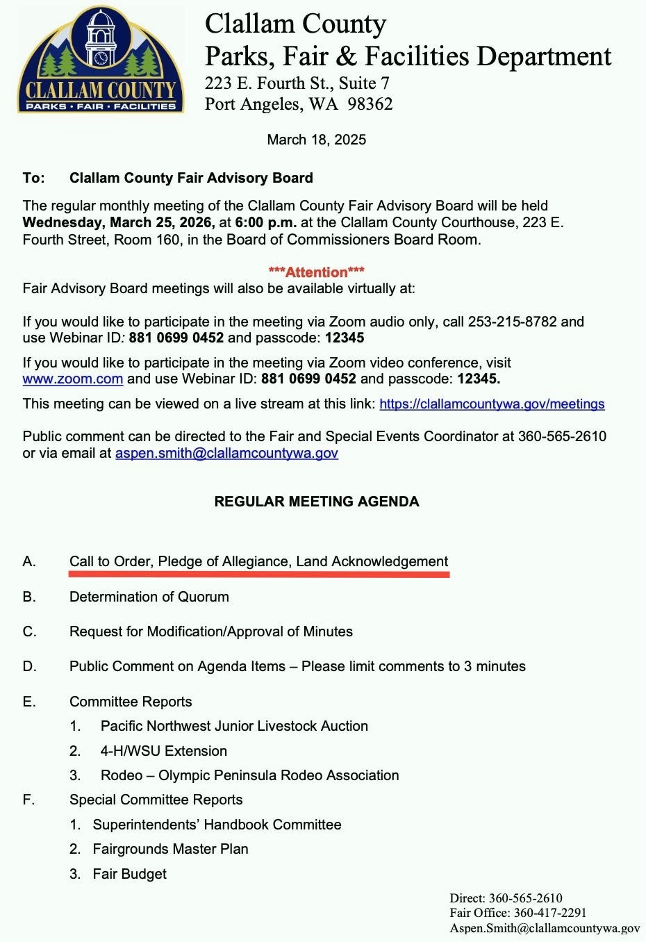 After the last public comment period, board member Cindy Kelly brought it up. She explained that during her time on the Port Angeles School Board, they had adopted a land acknowledgement and suggested the Fair Board do the same.