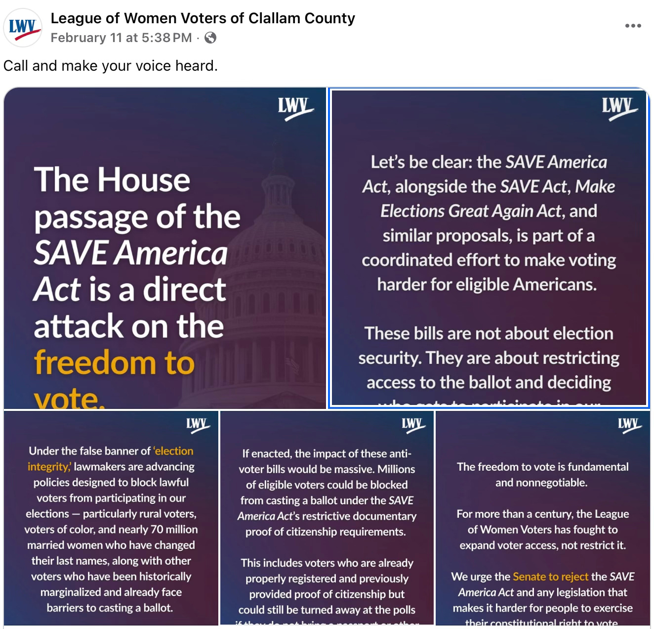 When it comes to restricting access or making ‘voting harder’ maybe the League should have a talk with the Clallam Conservation District about why they make voting for a supervisor ‘harder’ than in a regular election, and whether or not it restricts access by not alerting all residents in Clallam County about the election; as well as what the CCD did that resulted in a Superior Court voiding their previous election results.