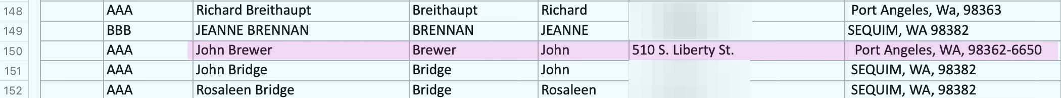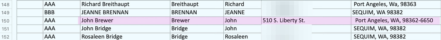 The postcard recipient list apparently included the late John Brewer, longtime publisher of the Peninsula Daily News, who passed away in April 2024.