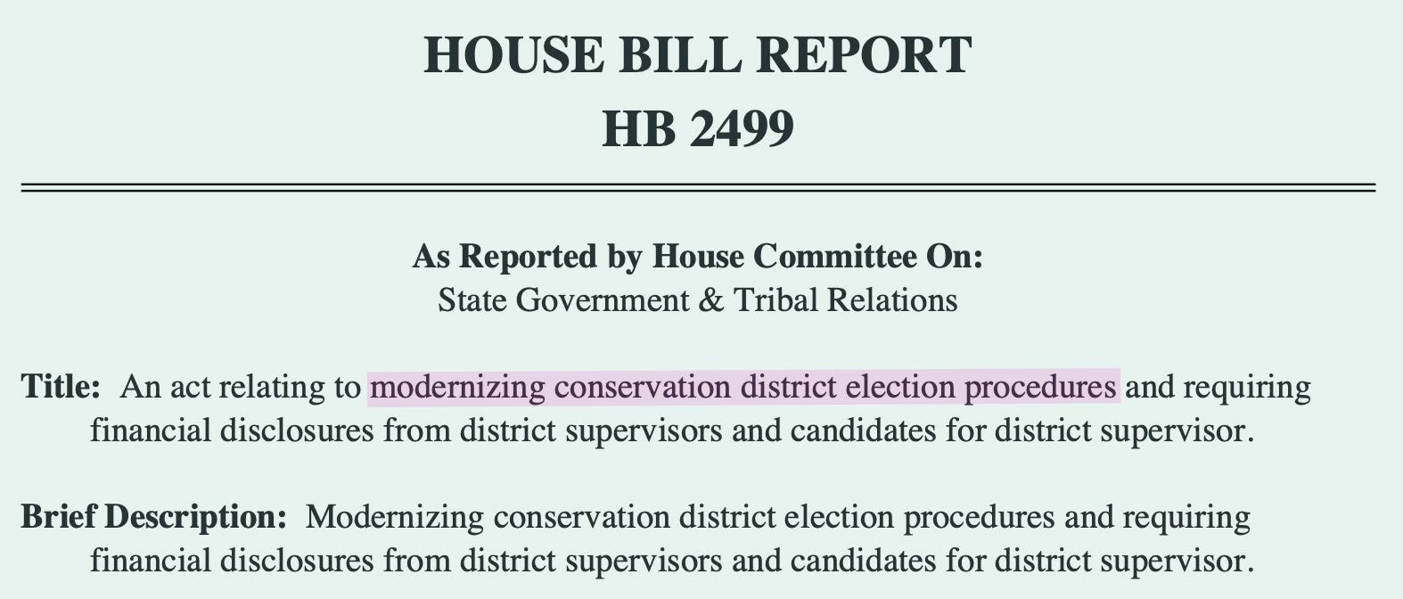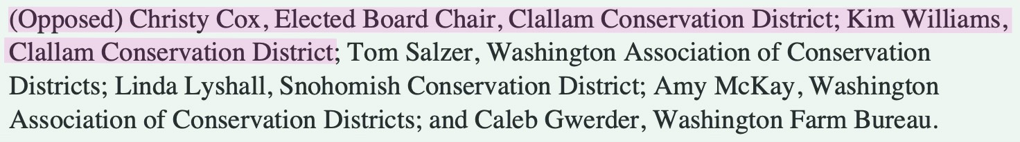Yet public records show Williams testified in opposition to House Bill 2499 — legislation related to conservation district election processes.