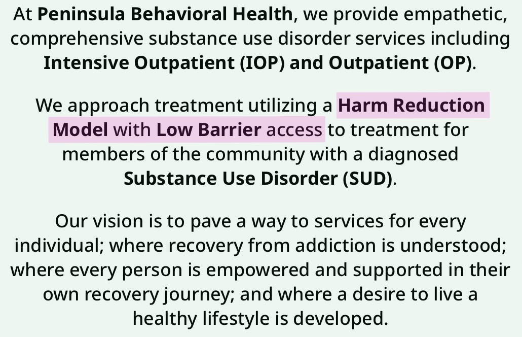 Regarding housing models, you indicated that PBH does not operate “low barrier housing,” and that drugs and alcohol are not allowed in your housing. However, at a May 14, 2024 Behavioral Health Board presentation, you described North View as “not exclusively dry.” To ensure clarity for readers, may I ask a straightforward question:
