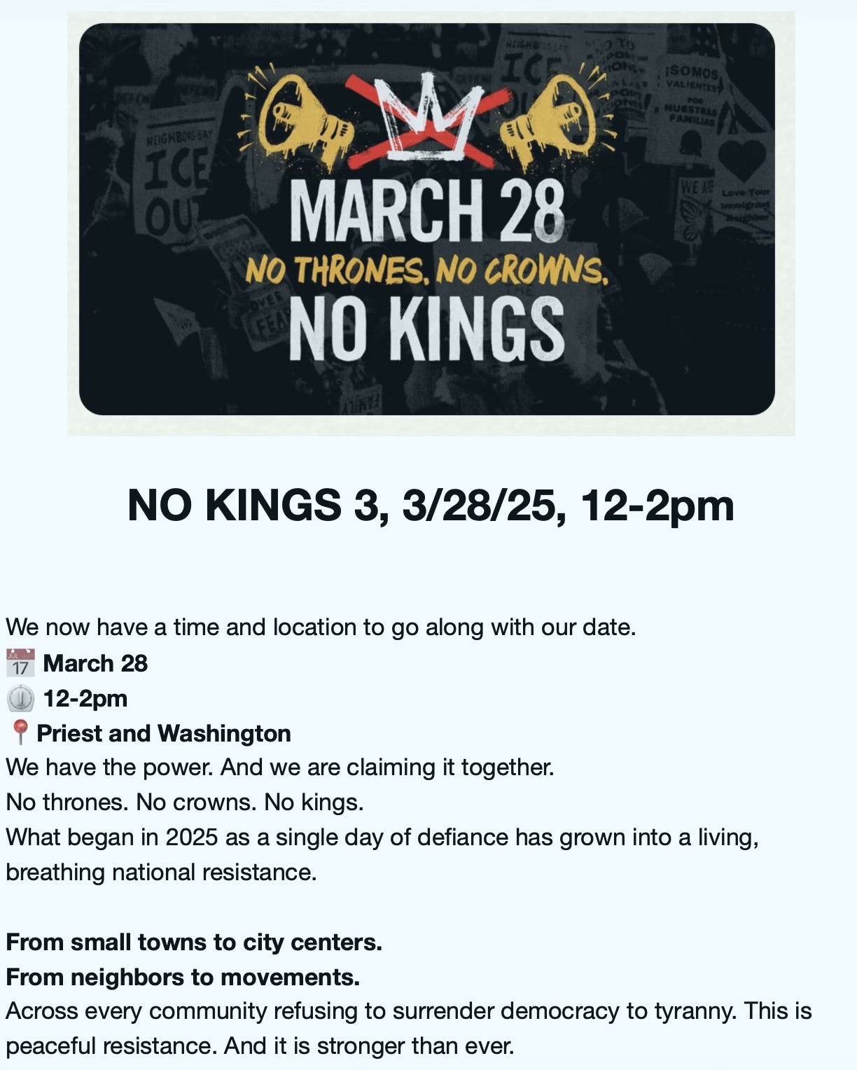 How do you reconcile promoting “No Kings” while ignoring concentrated power locally?