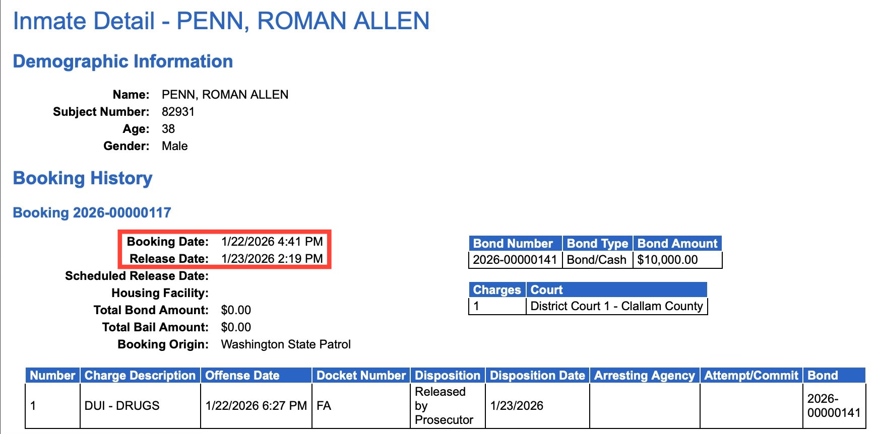 But here’s the inconvenient timing: Roman Penn, featured in that very report, was arrested last week for DUI-Drugs and released the next day. Another cycle completed. Another statistic polished.