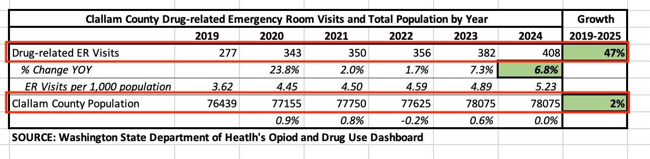 As Clallam’s harm-reduction footprint expanded, so did drug activity, overdoses, and drug-related emergency visits.