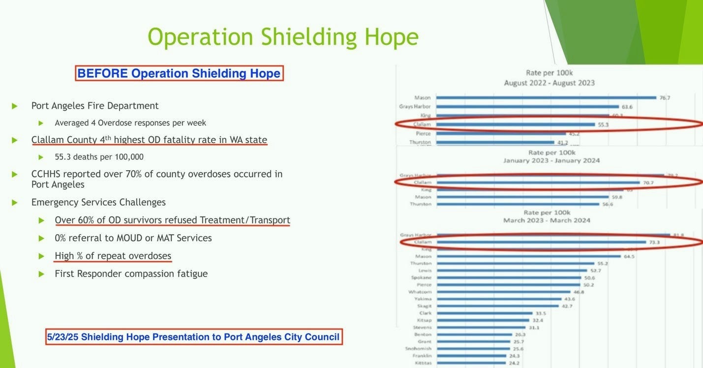 The timing and correlation between treatment-focused interventions and better-than-average overdose declines in both Oregon and Clallam County are difficult to ignore.