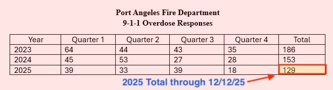 A public records request to the Port Angeles Fire Department shows that 9-1-1 overdose responses are also declining over the same three-year period.