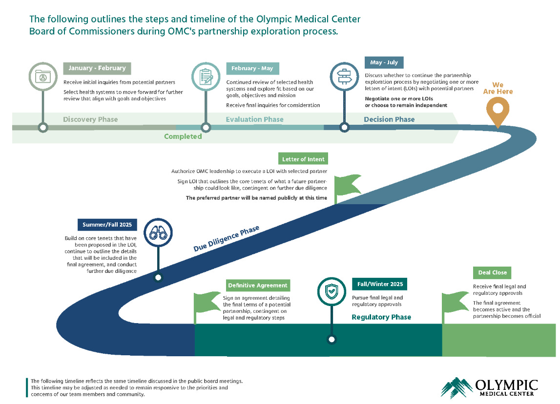 Yet, in public communications to voters, OMC leadership painted a different picture. Just one month ago, their official timeline showed the hospital was at the stage of “discussing whether to continue the partnership exploration process by negotiating one or more letters of intent”—to be followed by a due diligence phase. There was no mention of ongoing Department of Health citations, no warning about the looming loss of 340B status, and no clear disclosure of the financial hit the community would face.