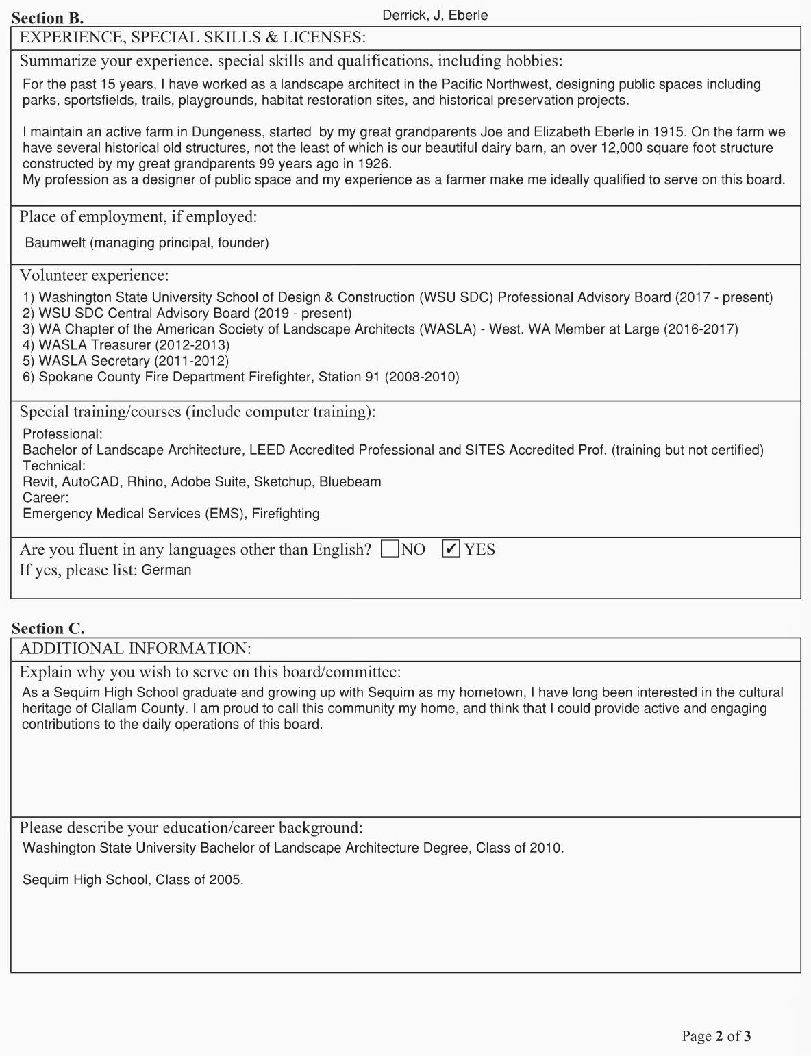Instead, the application relies on language like, “I maintain an active farm in Dungeness.”