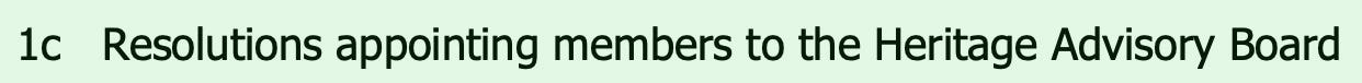 “All it says,” she explained, “is resolution appointing members to the Heritage Advisory Board.”