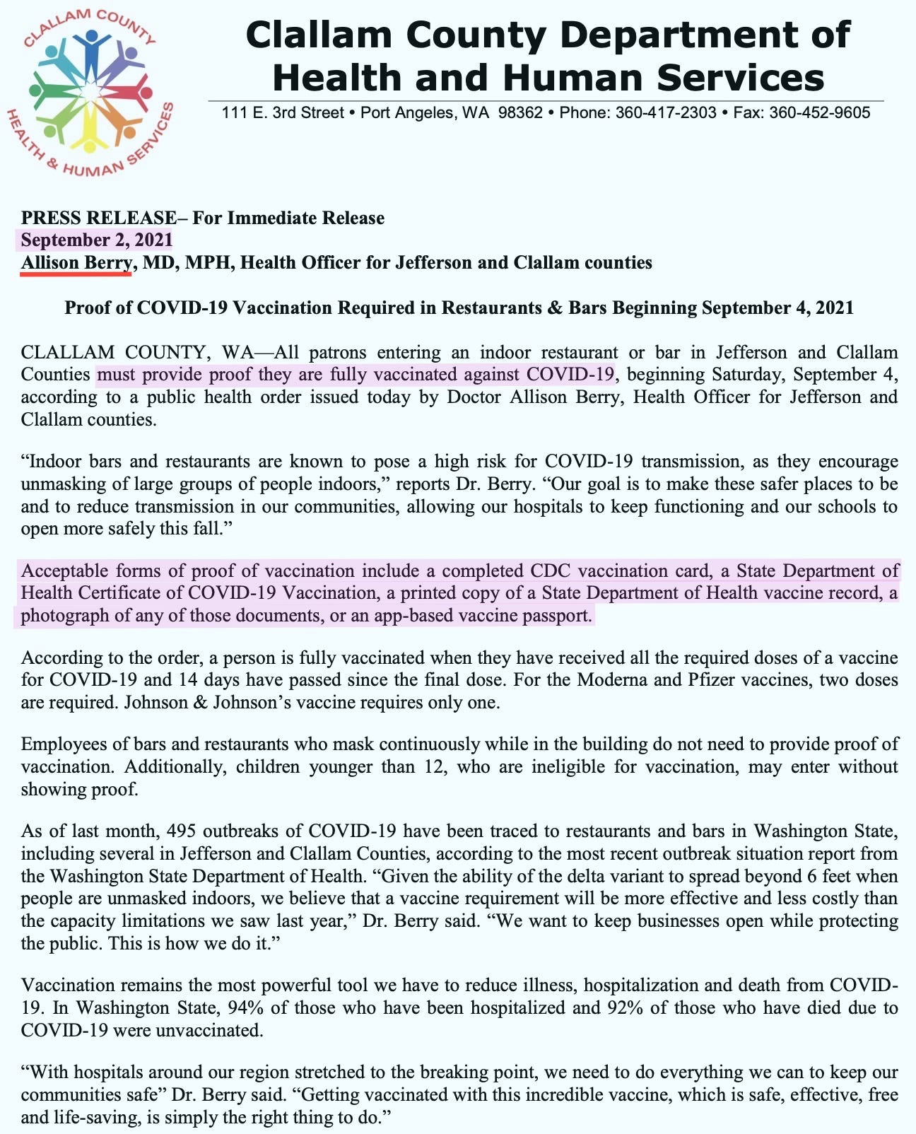 During COVID, Dr. Berry exercised sweeping authority—mandating masks, requiring proof of vaccination for entry into restaurants, and shutting down businesses that did not comply.
