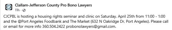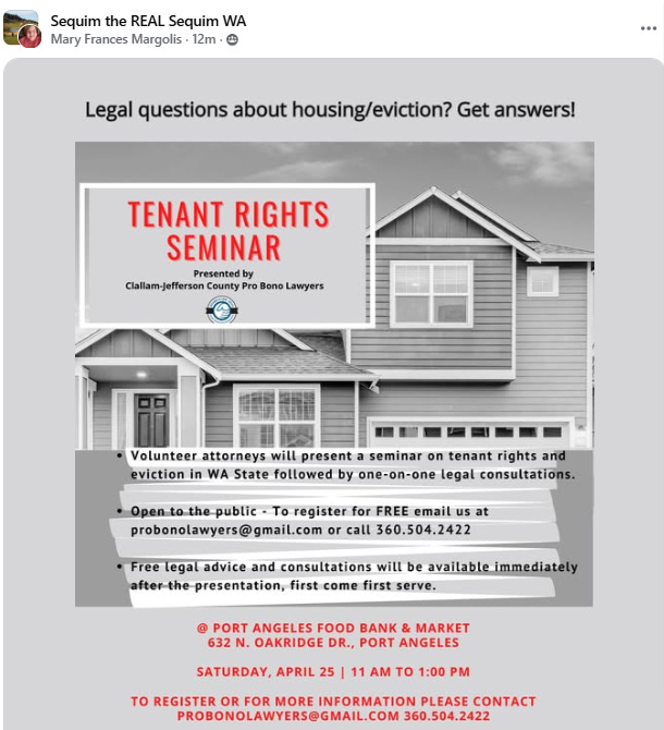 The Port Angeles Food Bank is now hosting a free “Tenant Rights Seminar,” offering legal consultations on eviction and renter protections.