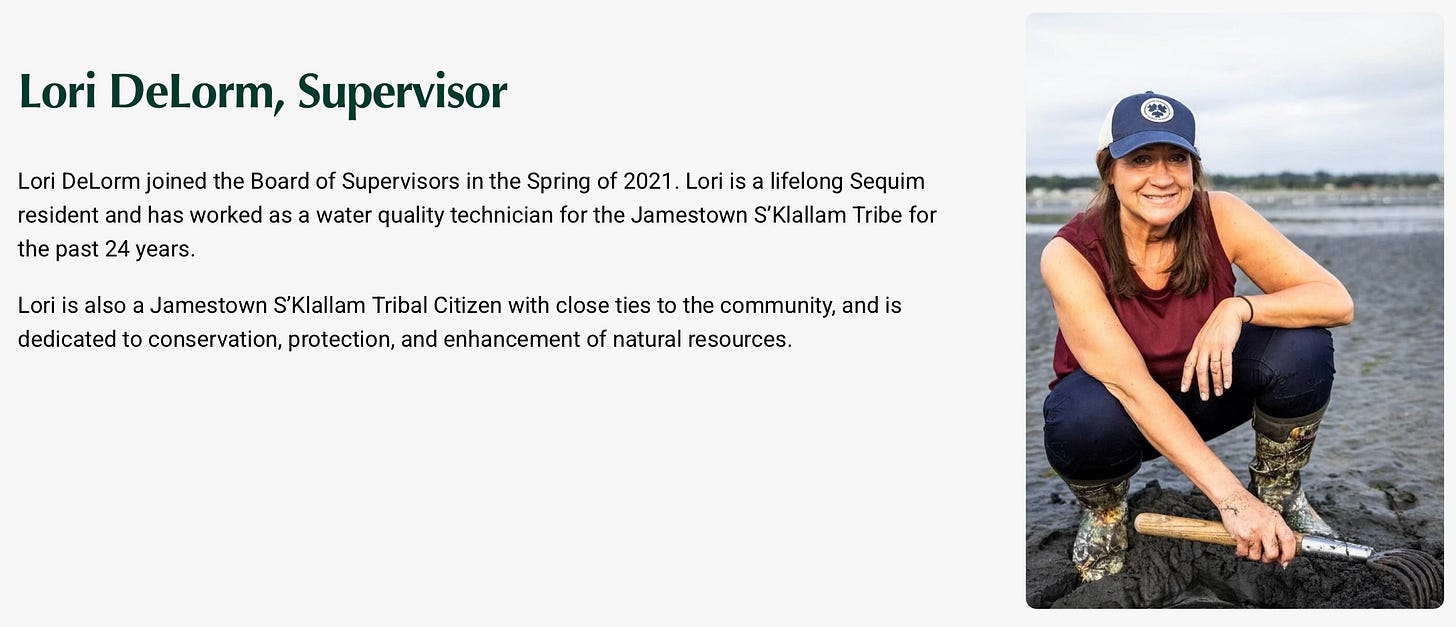 That concern deepened when CCD Supervisor Ben Smith, who also serves on the Dungeness River Management Team, encouraged participation while explicitly promoting Lori DeLorm’s stance on irrigation-ditch piping projects—projects strongly supported by the Jamestown S’Klallam Tribe.