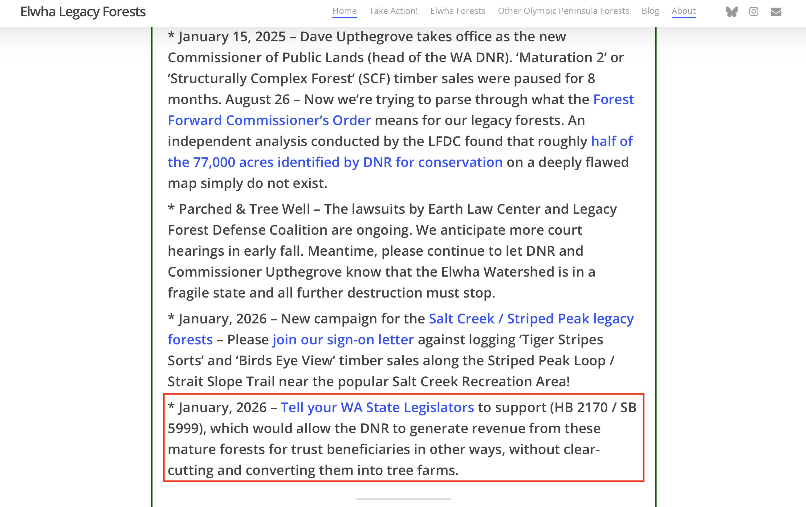Anti-timber advocacy groups, like Elwha Legacy Forests, have already embraced the bill.