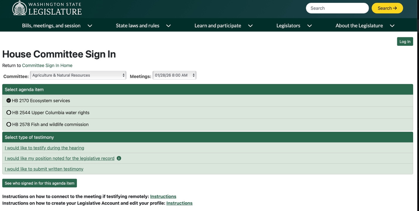 Sign up to testify, note your position, or provide written testimony on HB 2170.