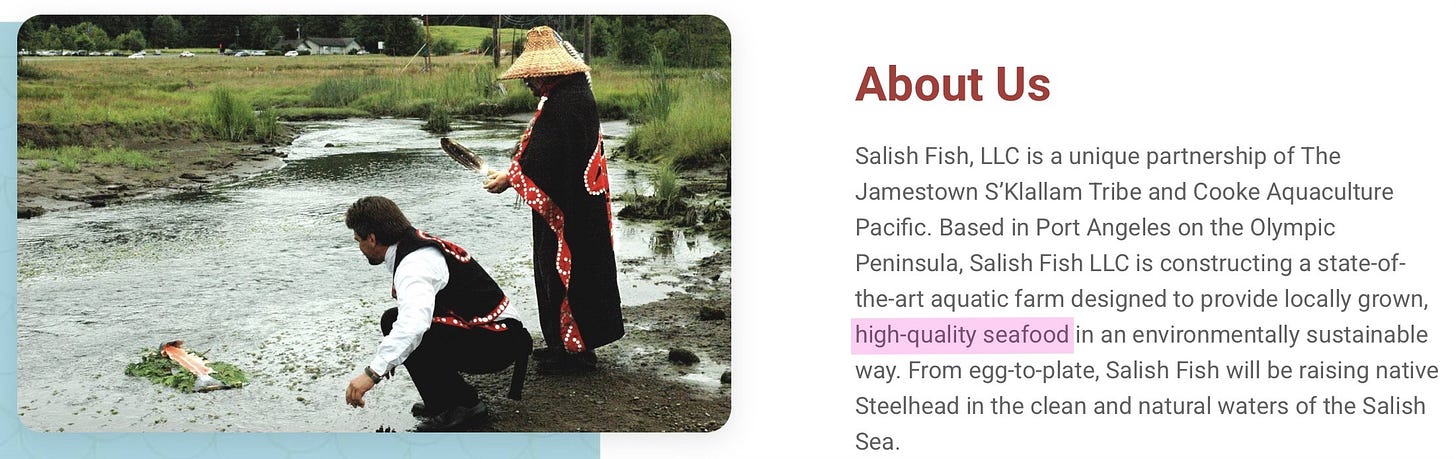 The Tribe’s aquaculture partnership advertises “high-quality seafood” produced locally.