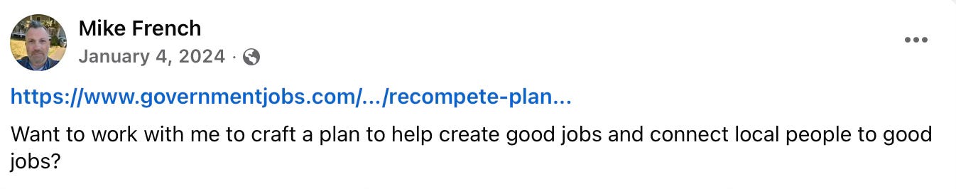 When Commissioner French was applying for Recompete funding, he openly discussed using the awarded grant funds so tribes could hire and train grant writers.