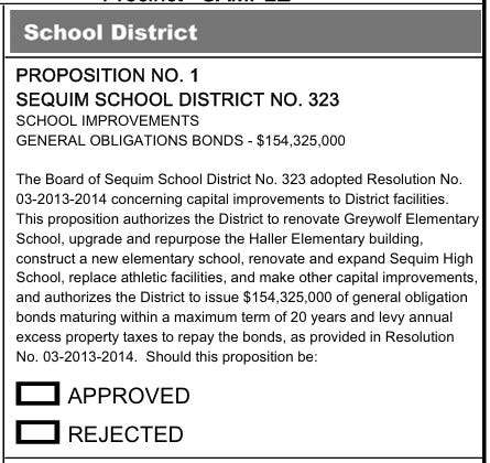 Clallam County Prosecuting Attorney Mark Nichols and Jefferson County Prosecuting Attorney James Kennedy approved the final ballot language before it was placed on the ballot. (Part of the Sequim School District extends into Jefferson County, including the Gardiner area.)