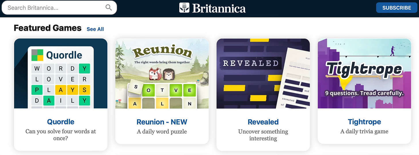 Multiple visits to Britannica.com quizzes and trivia pages.