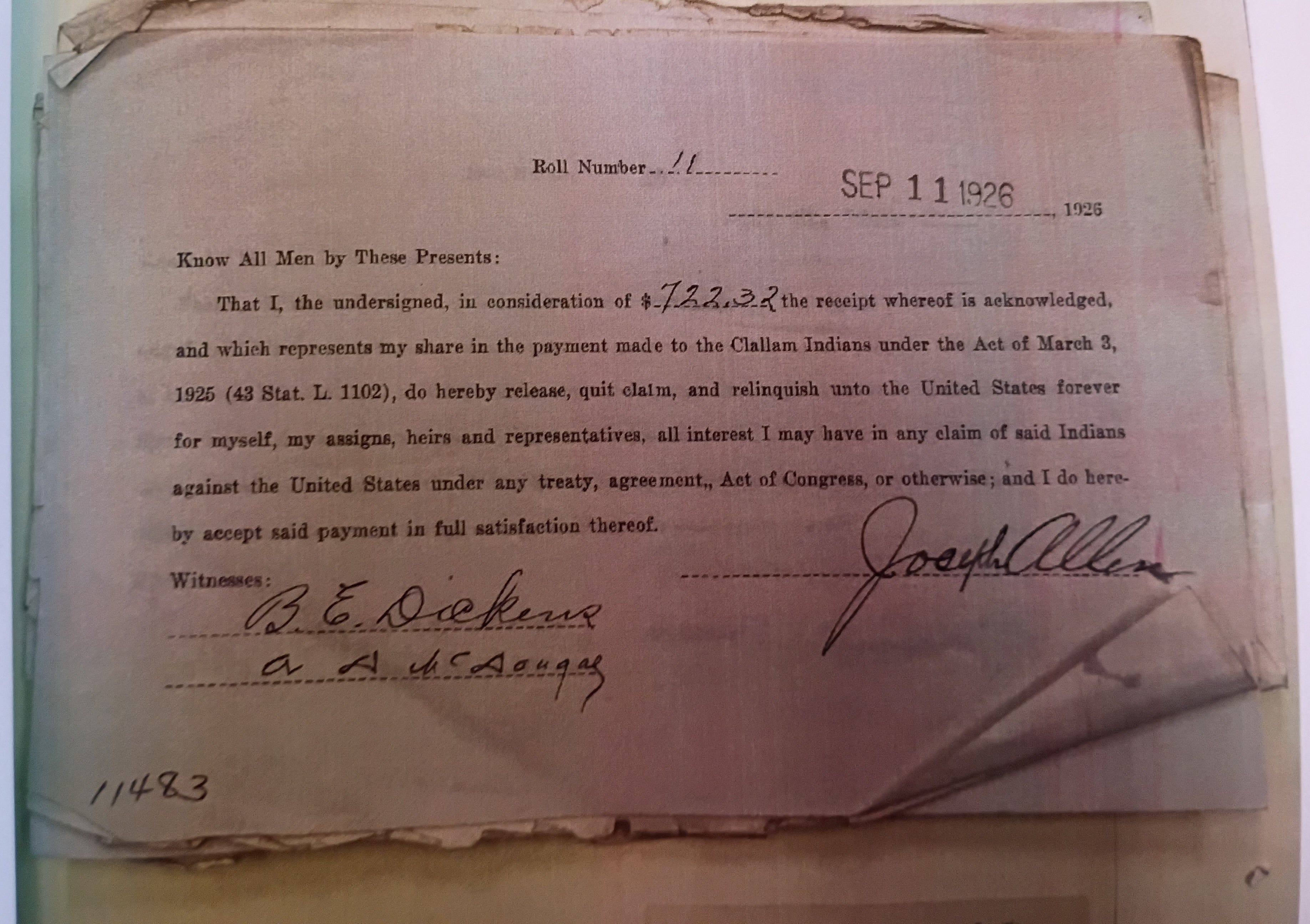 To receive payment, individuals were required to sign a sweeping legal release, relinquishing “all claims of any nature” against the United States under any treaty or agreement, including the Treaty of Point No Point. The intent was clear: this was meant to be a final settlement.