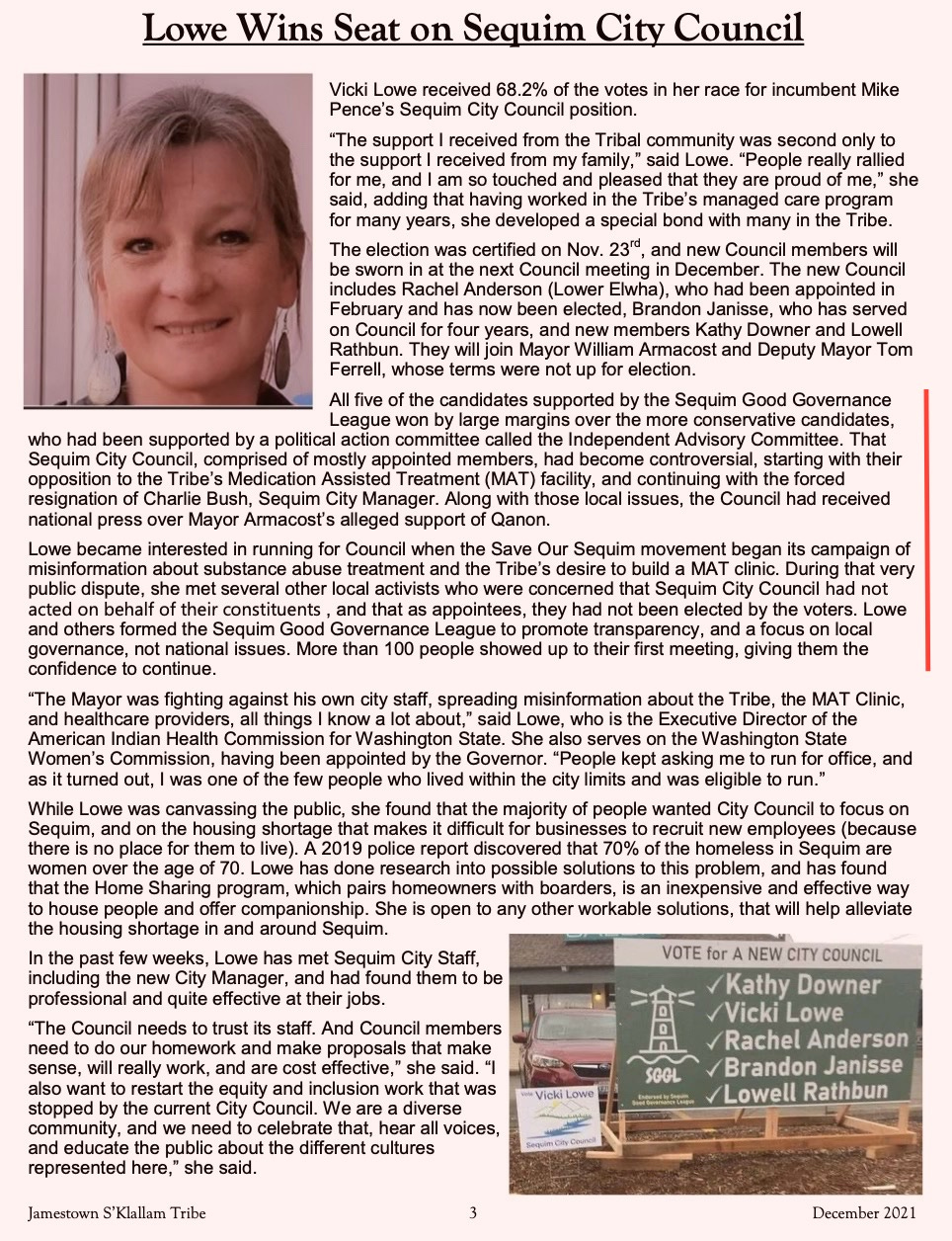 SGGL itself emerged during a very public dispute over the Jamestown S’Klallam Tribe’s proposed Medication Assisted Treatment (MAT) clinic. In its own materials, SGGL described how a prior council had become controversial in part for opposing the Tribe’s MAT facility, and how the “Save Our Sequim” movement was spreading what supporters called misinformation about substance abuse treatment and the Tribe’s plans.