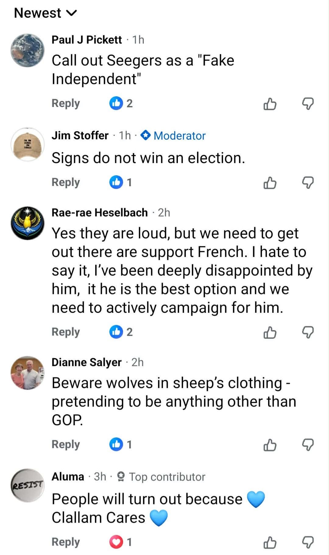 Scroll through the comments on local political posts—like these from Indivisible Sequim—and you start to see something deeper than just support or opposition to a candidate. You see a pattern.