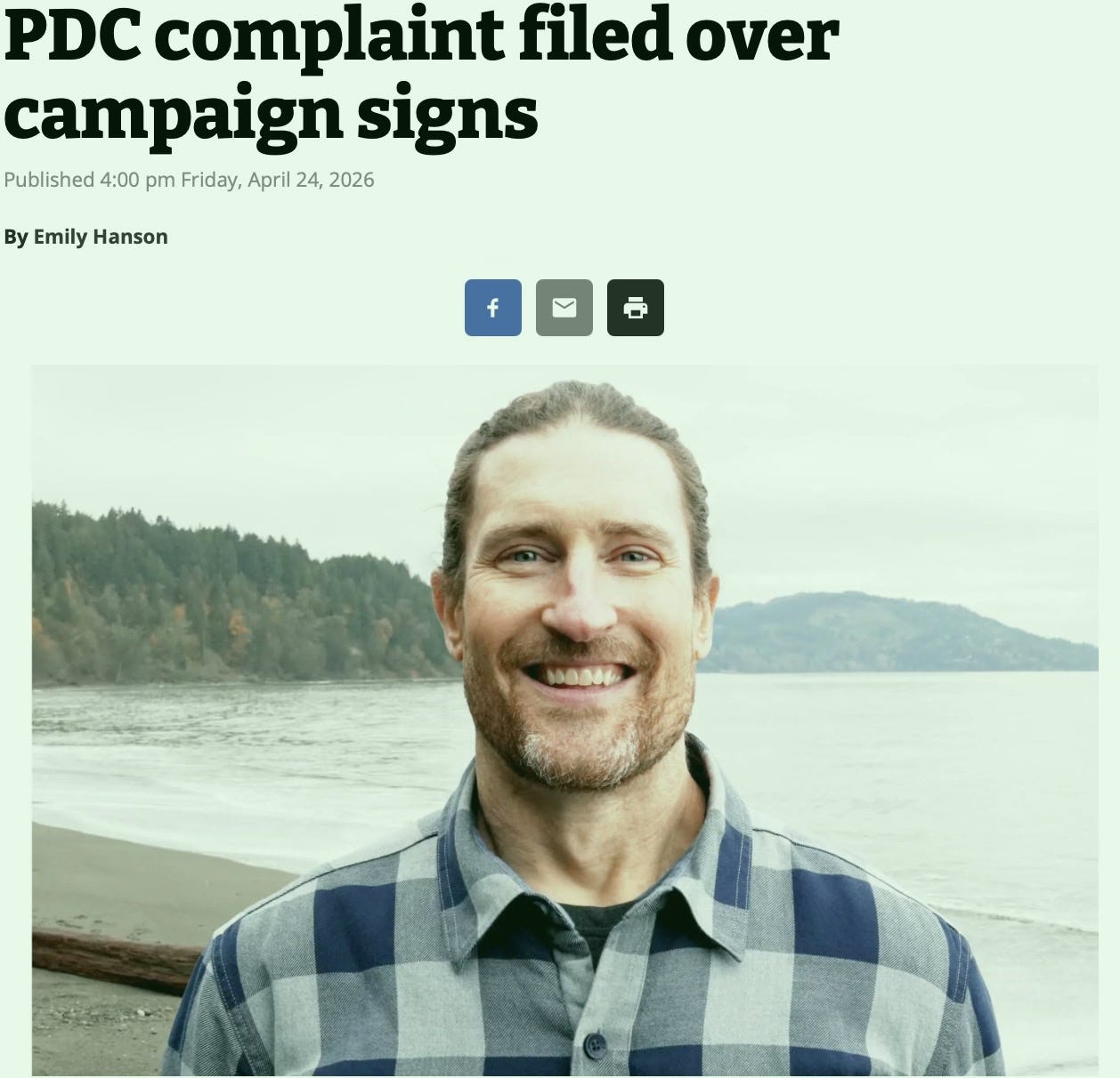 Recently, the PDN refused to publish a letter to the editor from Jake Seegers about unsanctioned camping in the Tumwater Creek watershed, rejecting it solely because he is a candidate, even though it never mentioned his campaign—denying him a voice as a private citizen