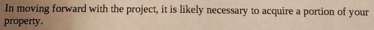 The language is straightforward: “It is likely necessary to acquire a portion of your property.”