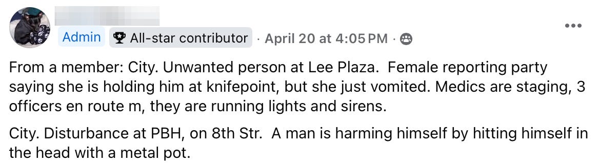 If you want a snapshot of where things stand locally, listen to the police scanner: