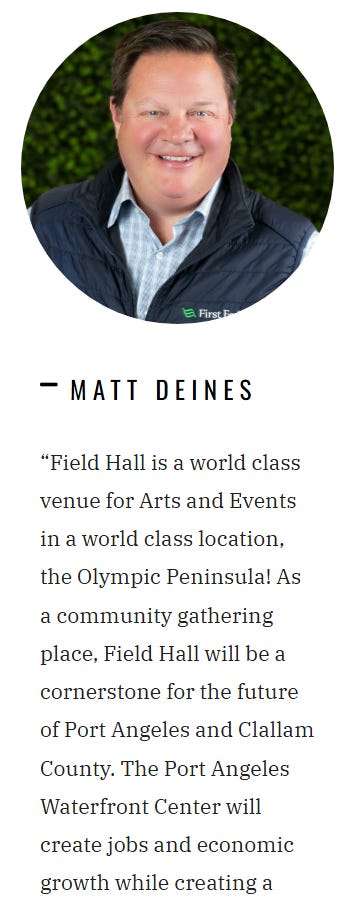 Despite the mounting red flags, Deines remains in positions of influence over the county’s economy and cultural infrastructure. He’s still on the board at the EDC—an agency responsible for steering business strategy and attracting new investment to Clallam County. He’s still helping shape policy and fundraising at Field Hall—a major recipient of public and private support. And he still sits atop Meriwether Capital’s leadership, an entity that may yet pose further financial risk.