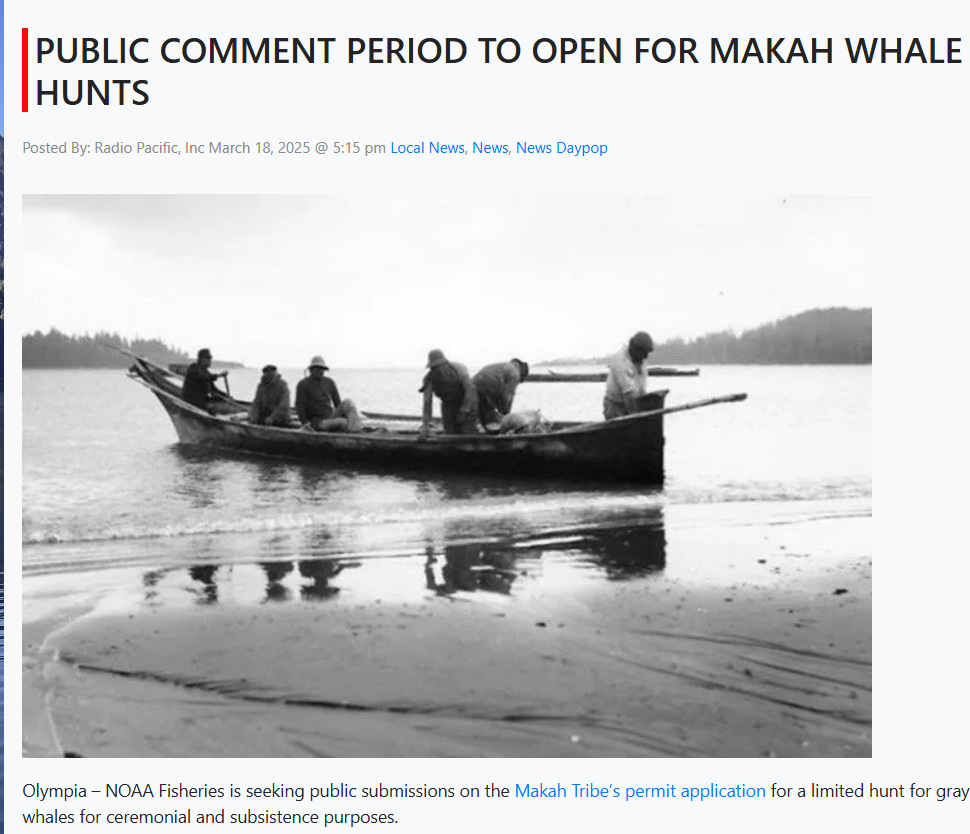 When KONP Radio covered the federal government's consideration of the Makah Tribe’s request to resume whale hunting, they chose a historic black-and-white photo without whales—or hunters.