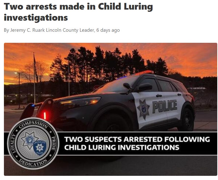 “Bemis was charged with two counts of Luring a Minor and Online Sexual Corruption of a Child in the Second Degree. He is being held in Clallam County Jail awaiting extradition to Oregon.”