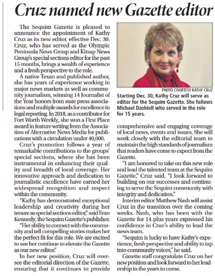 After the Sequim Gazette ran an op-ed by Craig Smith and Tony Corrado supporting a Clallam County Charter amendment to create a new “Water Steward” position, I reached out to Editor Kathy Cruz from my private email address with a simple request: