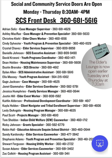 The Jamestown S’Klallam Tribe recently released a staff directory for its Social and Community Services Department. The list includes 27 staff contacts—for a tribe of 509 members, of which only 209 live locally.