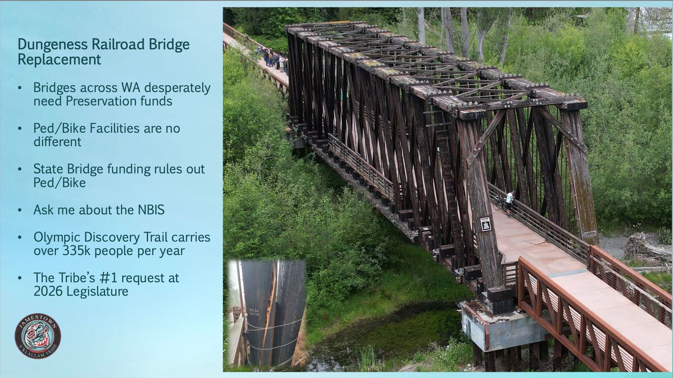 In January, the Jamestown Corporation told the Sequim Gazette that officials were working with “community partners” on a capital funding campaign for the bridge replacement.