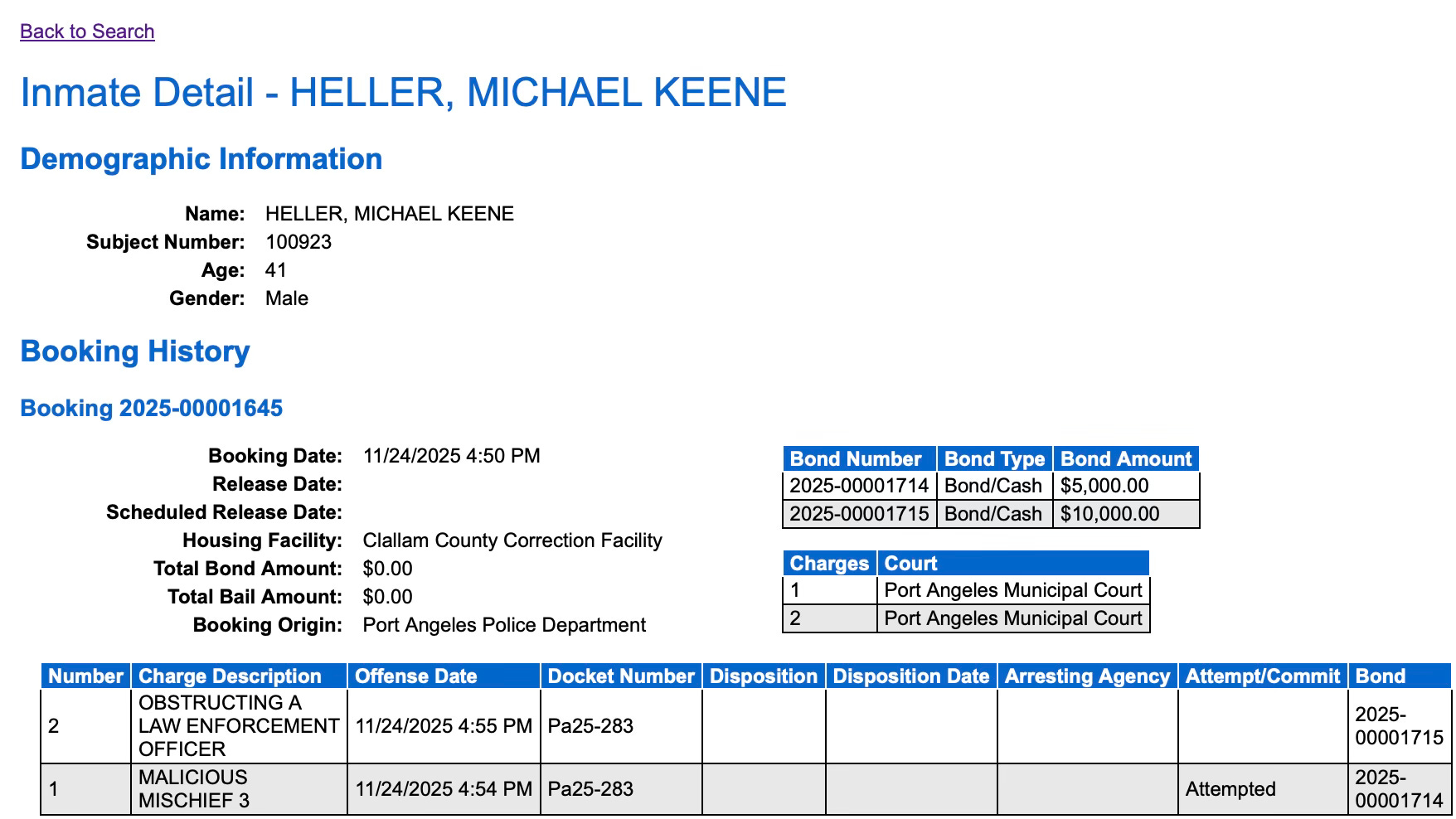 Michael Heller—one of the most documented repeat offenders in county history—has been booked again, this time for obstructing an officer and malicious mischief.