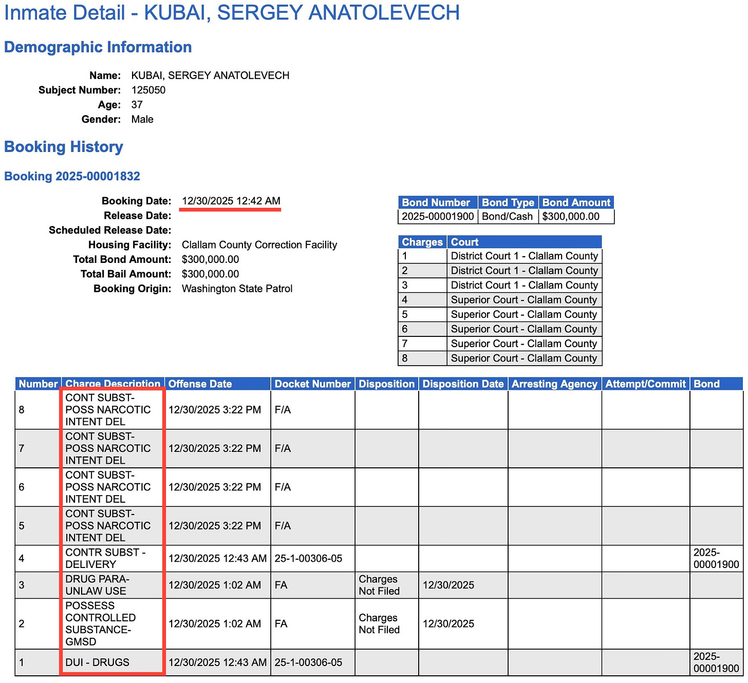 Sergey Anatolevech Kubai—recently arrived from Montana—has now been arrested three times this month in Clallam County on multiple drug-related charges, including possession of stolen firearms and dangerous weapons. The previous two times, he was released within days.