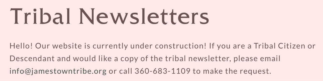 That distinction matters because the Jamestown Corporation has increasingly described itself as a public entity — while simultaneously removing public access to information. Its interactive parcel ownership map now requires a login. Tribal newsletters have been “under construction” for months. Annual reports have vanished.