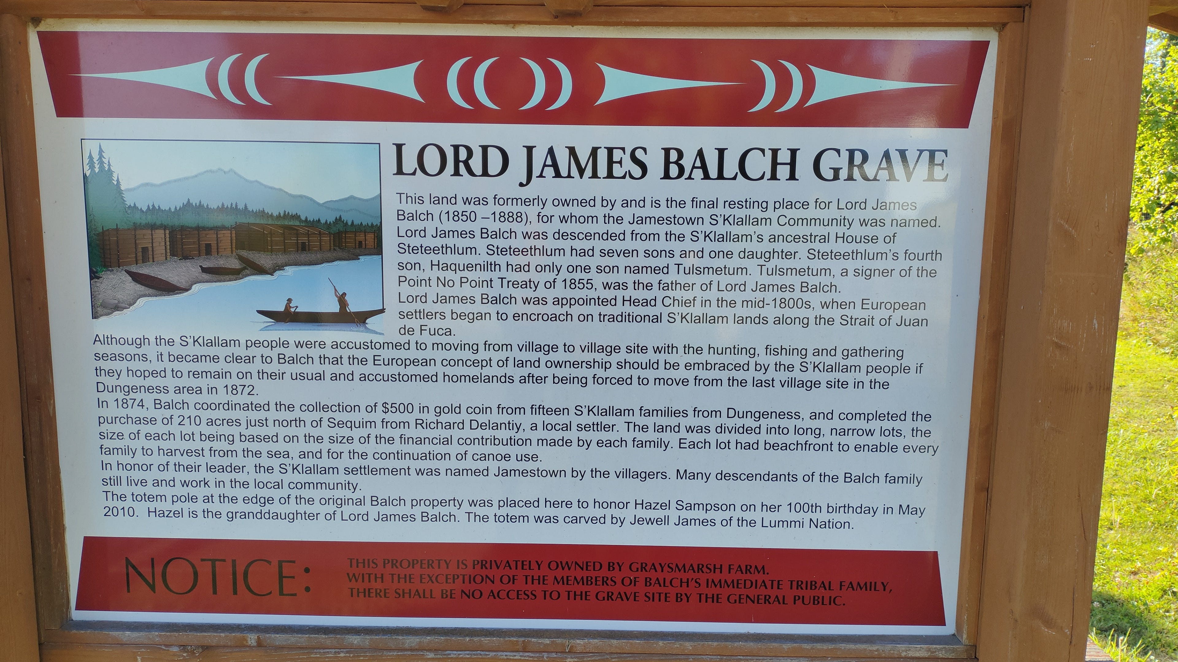 Just six years later, in 1874, the Jamestown S’Klallam Tribe purchased 210 acres on the Strait of Juan de Fuca. Fifteen families, led by Lord James “Jim” Balch, pooled $500 in gold coins to secure the land. This purchase was bold, even visionary—By buying land, they carved out independence, establishing Jamestown, Washington.