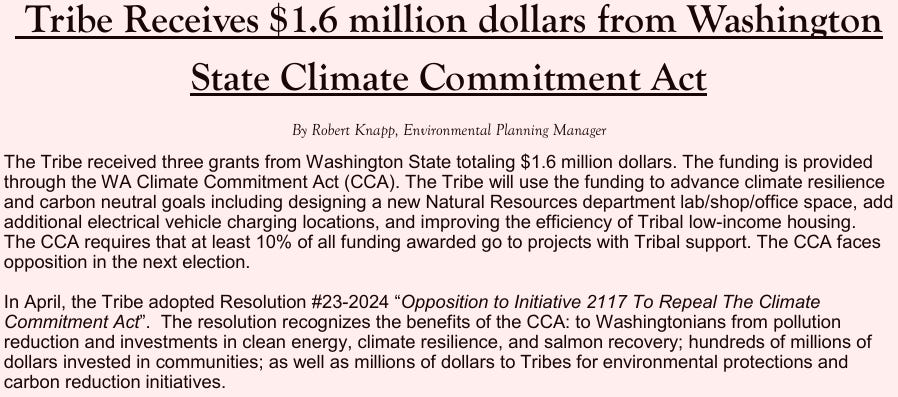 On the Olympic Peninsula, the Climate Commitment Act doesn’t feel like an abstract carbon policy—it feels like a quiet markup on groceries, gas, and building supplies, because nearly everything we buy gets here by truck. Families scraping to fill a tank pay first, and pay again at the checkout line. But while the public absorbs the cost, the Department of Commerce advertises CCA-backed programs that—by design, eligibility rules, or “separate track” meetings—steer a disproportionate share of the upside to tribal governments and tribal entities. If this is “equity,” why does it look like a system where everyone pays, but only some are positioned to win?