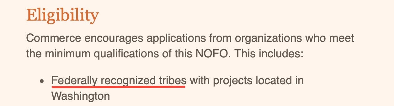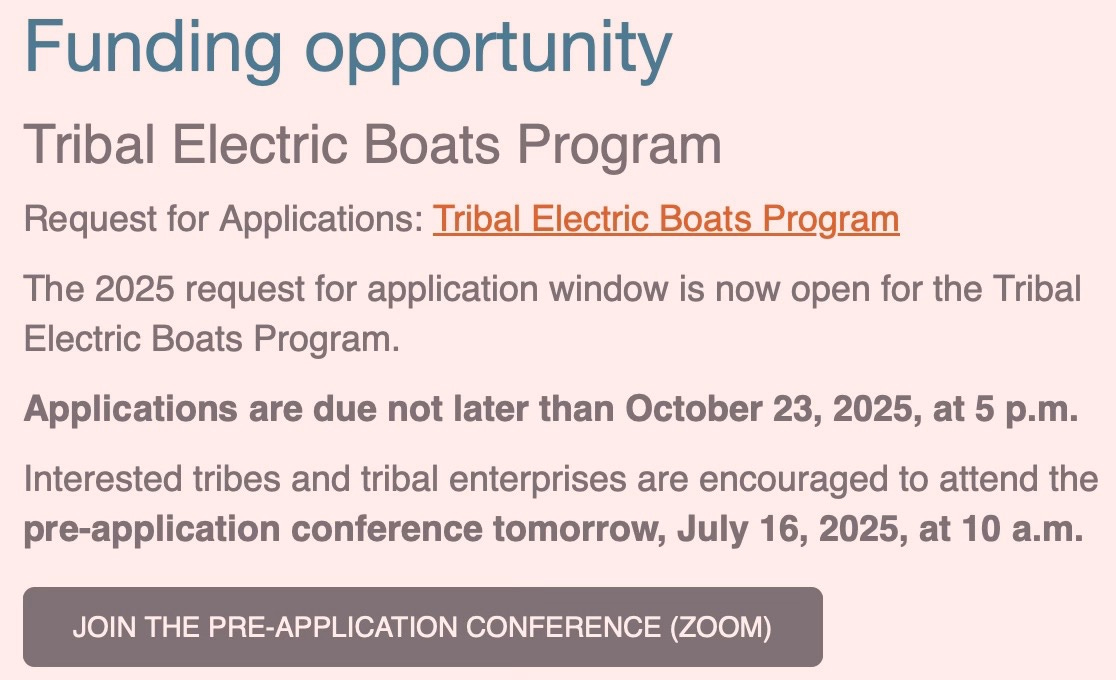 Some programs don’t even claim to be universal. The Tribal Electric Boats Program is exactly what it sounds like—limited to tribes and tribal enterprises.