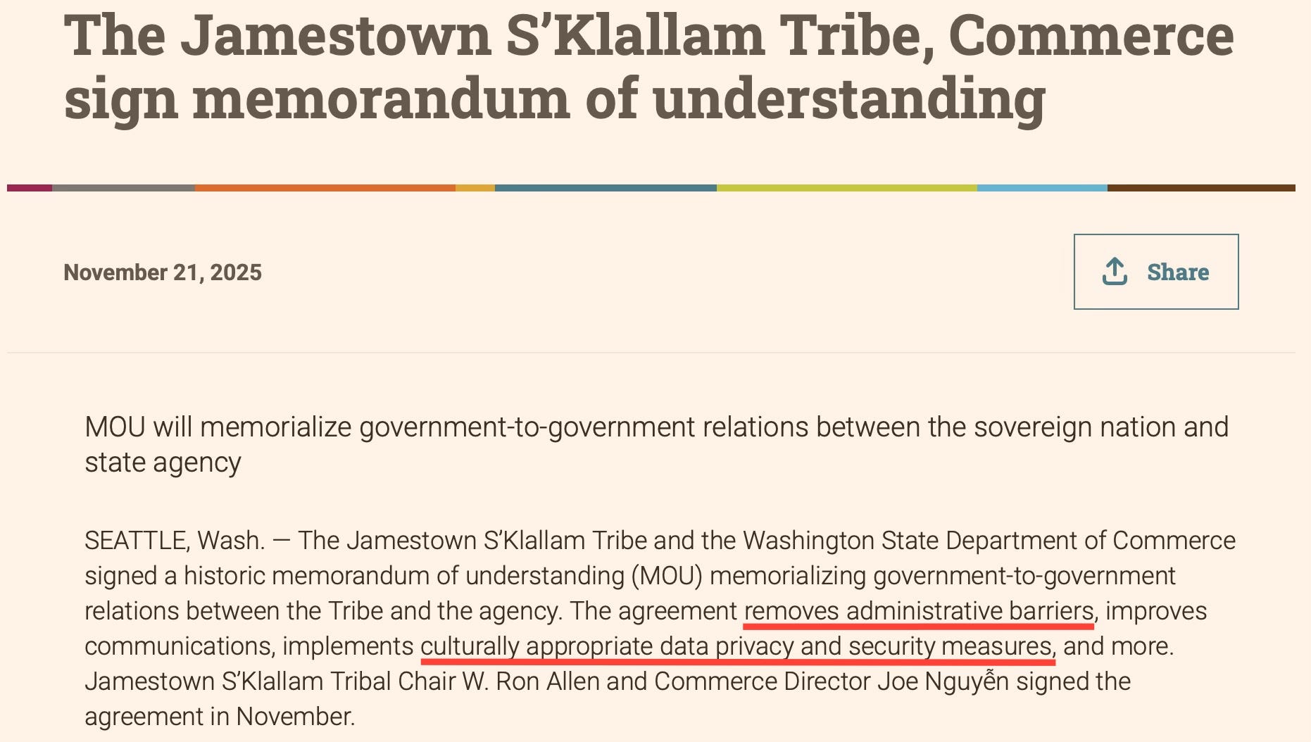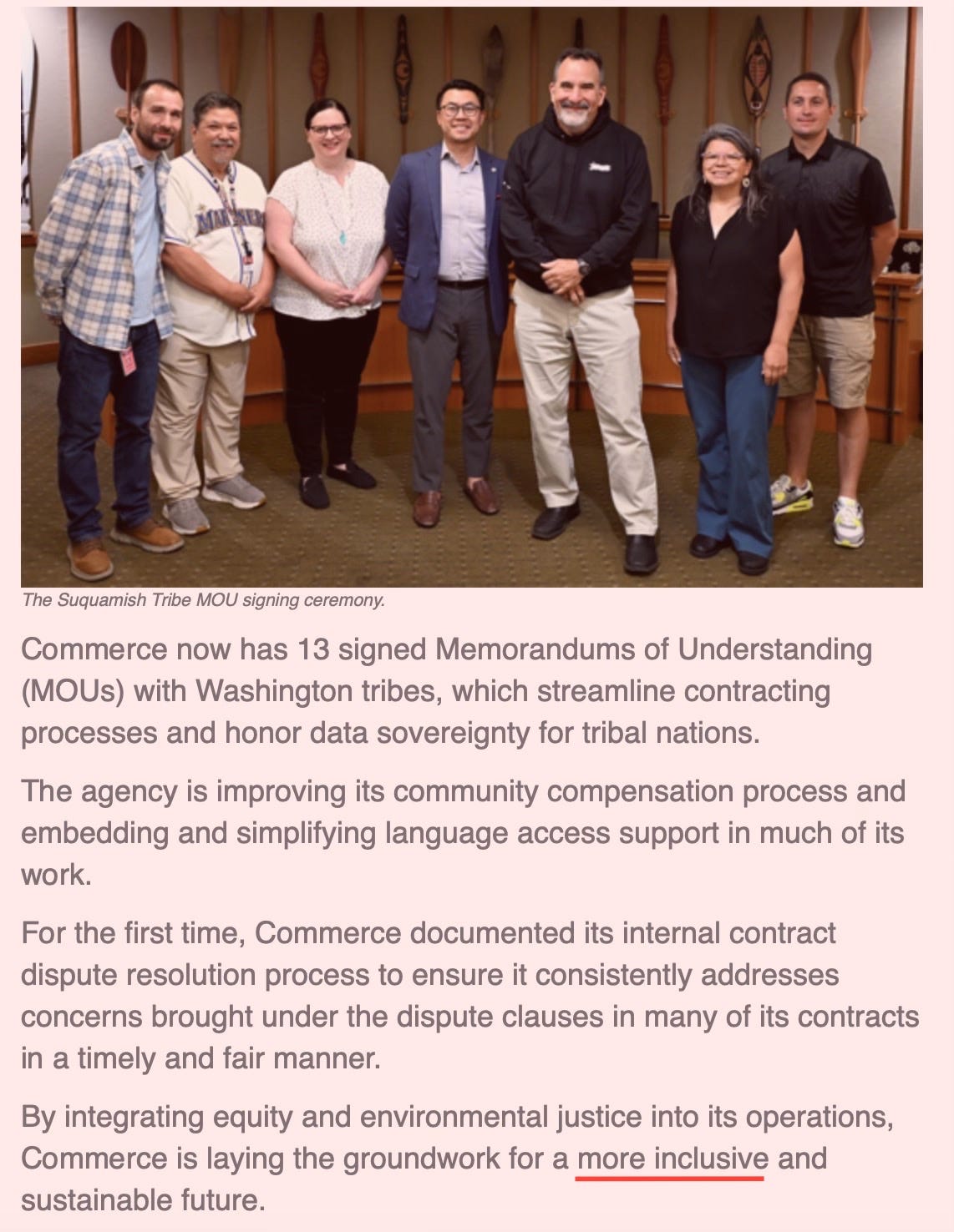 Commerce promotes its growing list of tribal MOUs as a success—agreements that streamline contracting and “honor data sovereignty.”