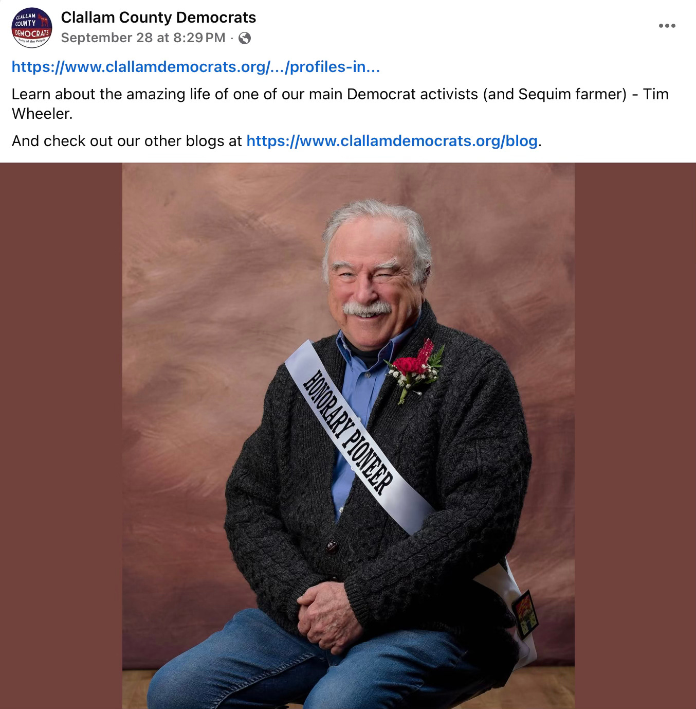 You can tell a lot about an organization by who it celebrates. The Clallam County Democrats recently spotlighted activist and farmer Tim Wheeler as a “main Democrat activist.”