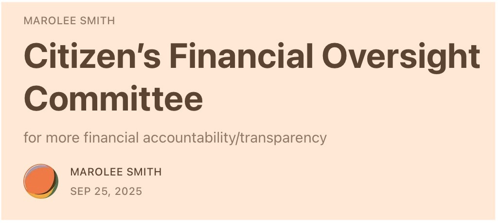 Her solution, outlined on her own Substack, is simple: establish a citizens’ finance committee to provide independent oversight, ensure transparency, and end the habit of rubber-stamping staff requests. In an era of growing debt, hidden liabilities, and “creative accounting,” Dvorak’s proposal sounds less like politics and more like common sense.
