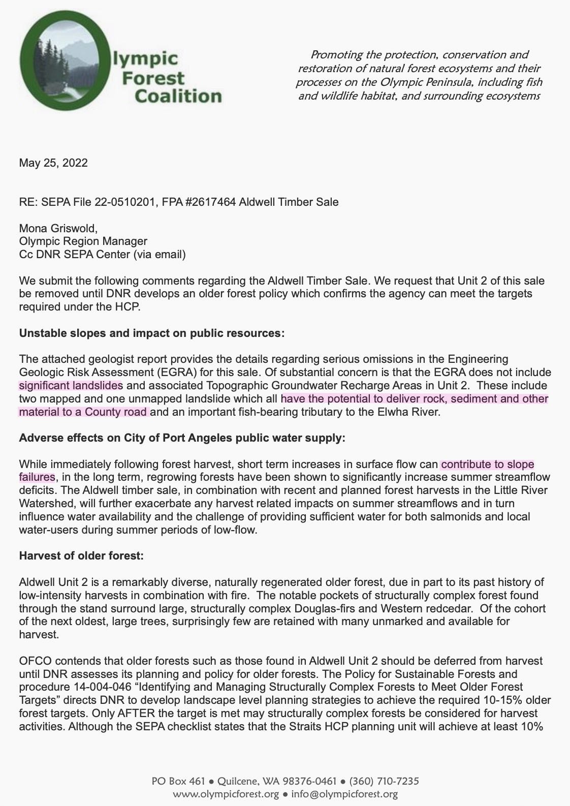 Local geotechnical engineer Glen Wade of North Shore Geo, based in Port Angeles, submitted multiple comments to DNR reinforcing those concerns. According to Earth Law Center, those warnings were largely brushed aside.